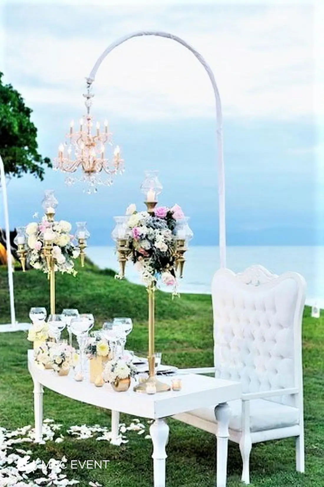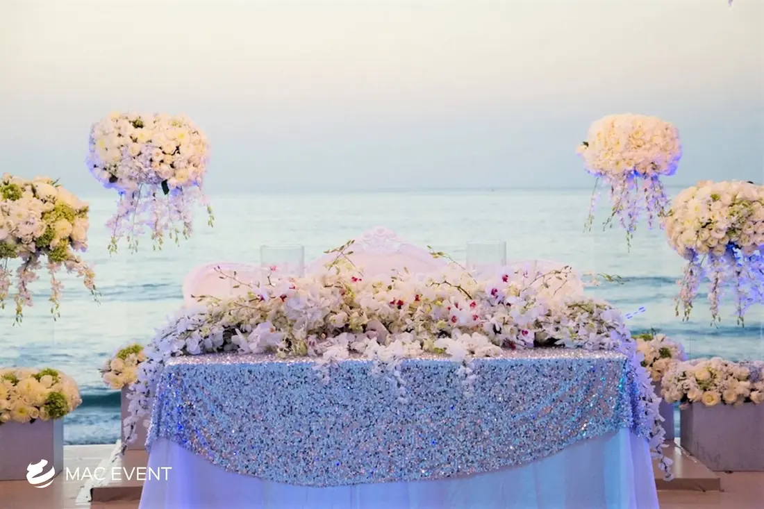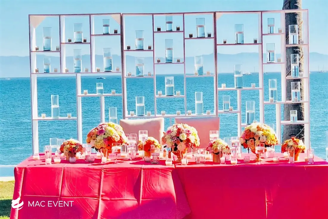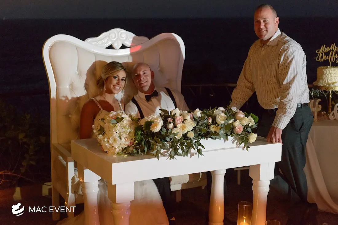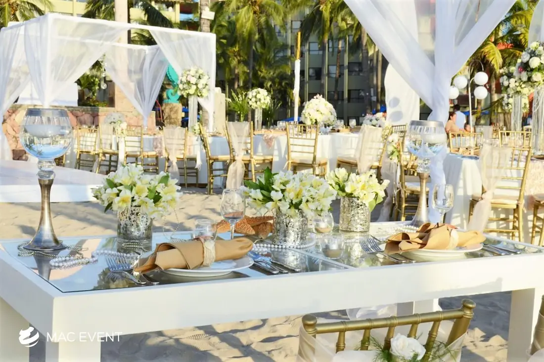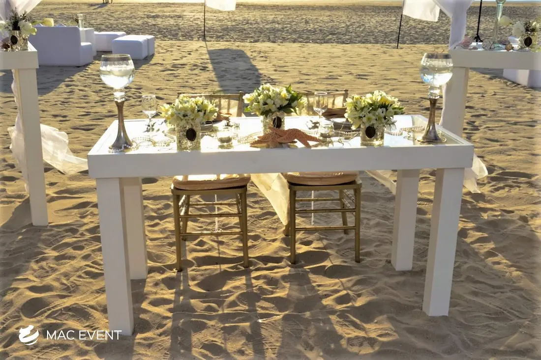 The sweetheart table is a romantic focal point at weddings in San Pancho, designed exclusively for the newlyweds to share their first moments together as a married couple. This wedding table rental combines elegance and intimacy, often highlighted with floral arrangements, candles, and personalized décor that reflect the couple’s style. Positioned at the center of attention, the sweetheart table enhances both the ambiance and the visual flow of the reception. Renting sweetheart tables in San Pancho ensures a beautifully coordinated setup that captures the essence of love and celebration. For an elegant and memorable touch, this table is a must-have feature for any wedding.
