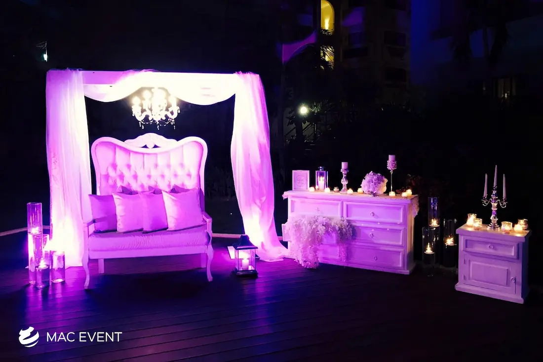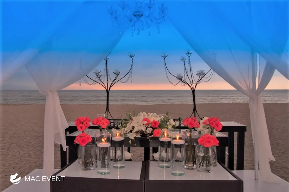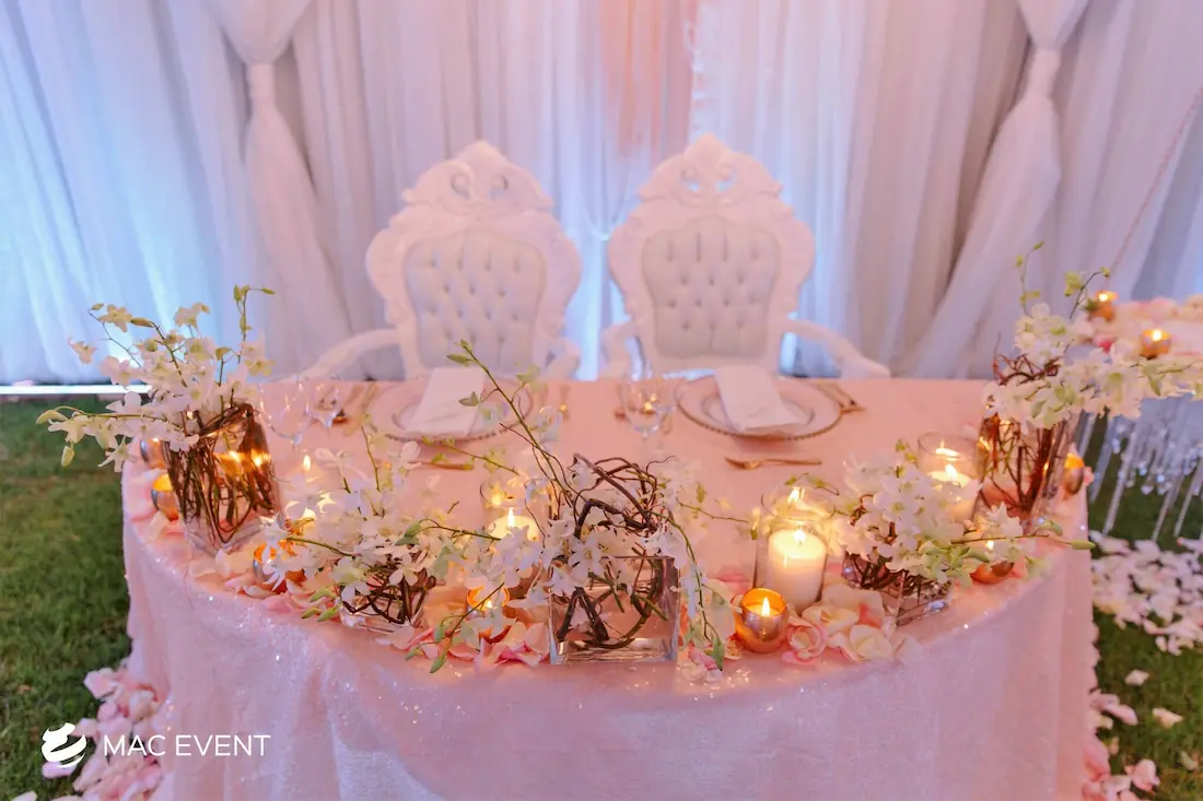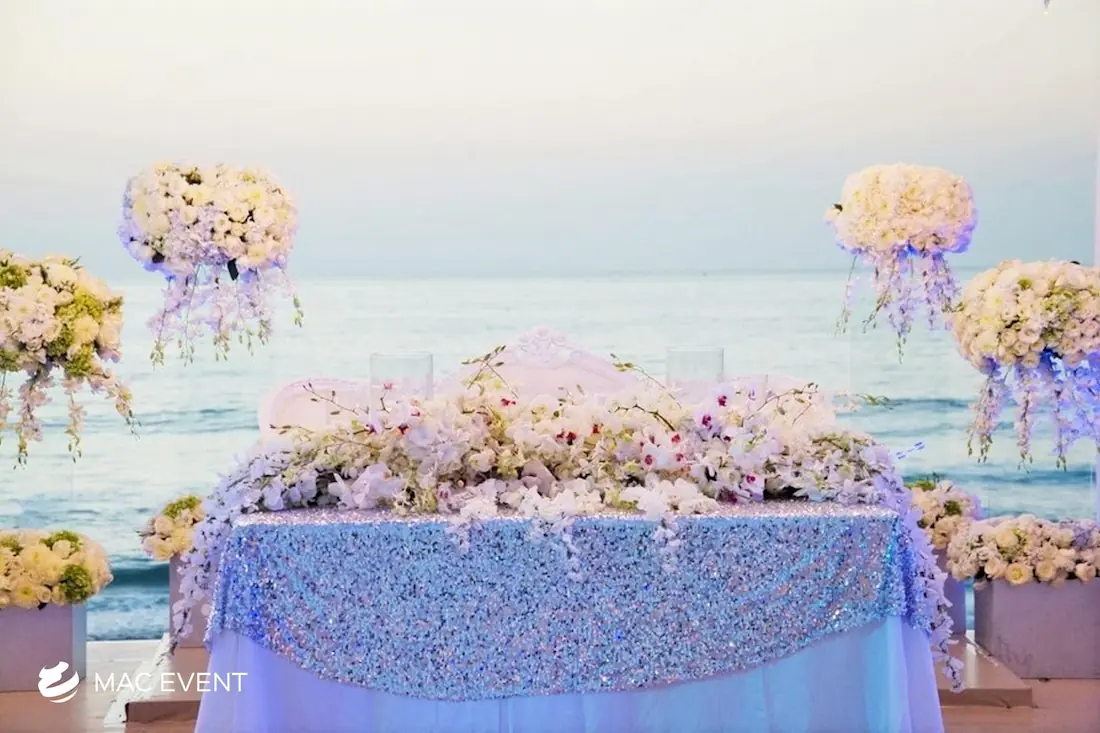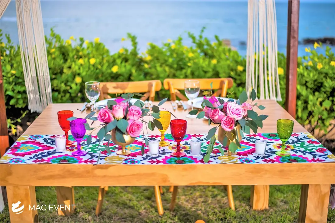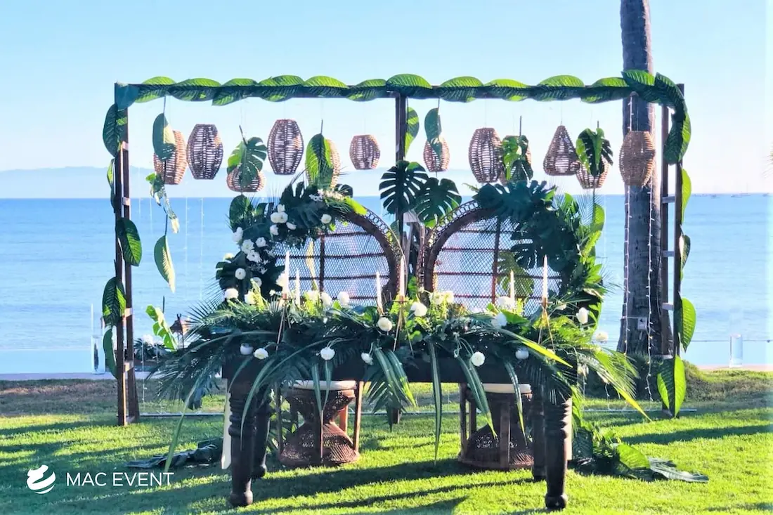 The sweetheart table is a romantic focal point at weddings in San Pancho, designed exclusively for the newlyweds to share their first moments together as a married couple. This wedding table rental combines elegance and intimacy, often highlighted with floral arrangements, candles, and personalized décor that reflect the couple’s style. Positioned at the center of attention, the sweetheart table enhances both the ambiance and the visual flow of the reception. Renting sweetheart tables in San Pancho ensures a beautifully coordinated setup that captures the essence of love and celebration. For an elegant and memorable touch, this table is a must-have feature for any wedding.