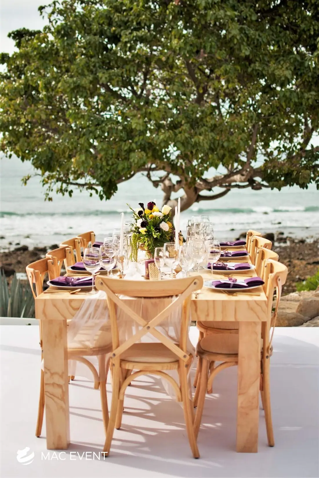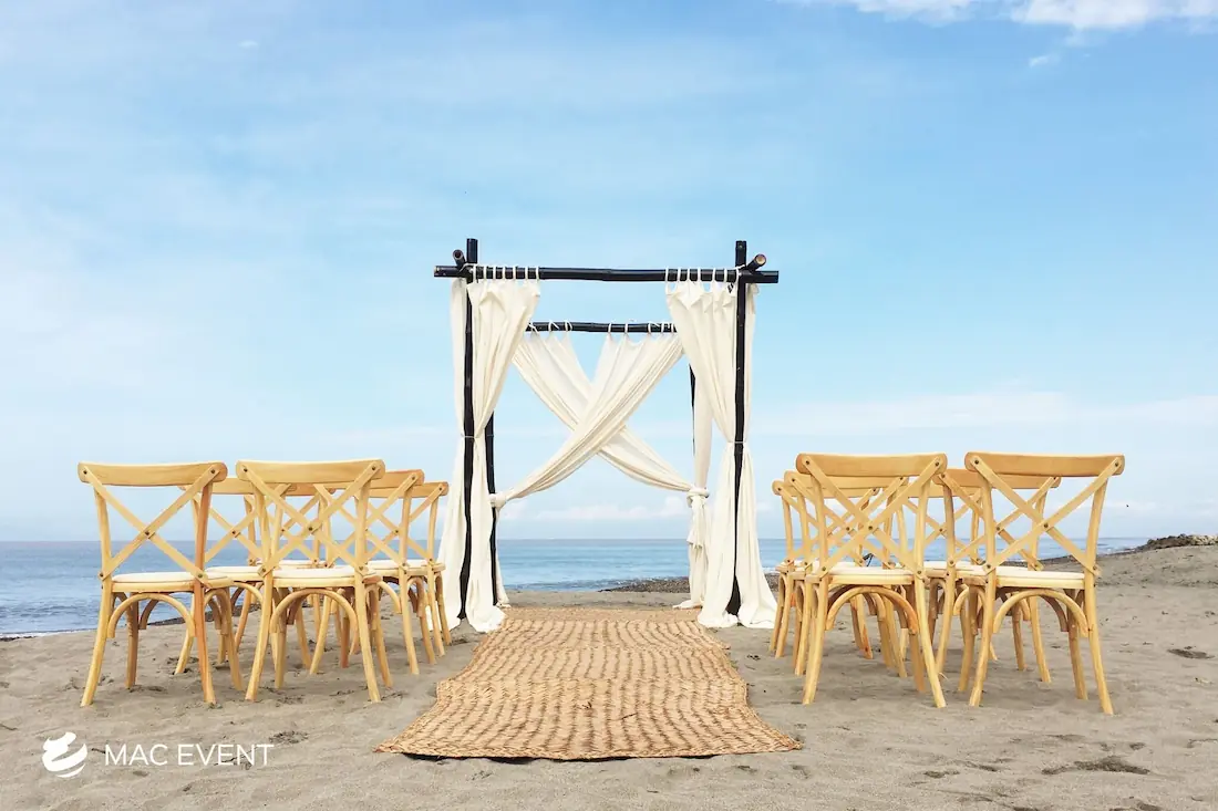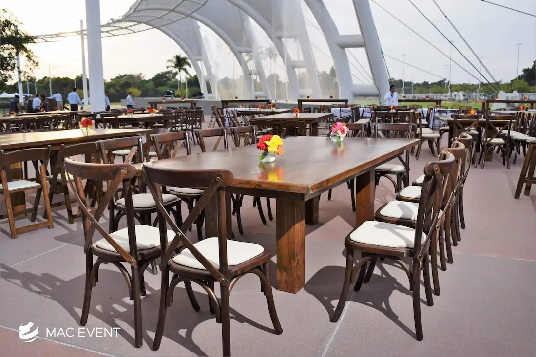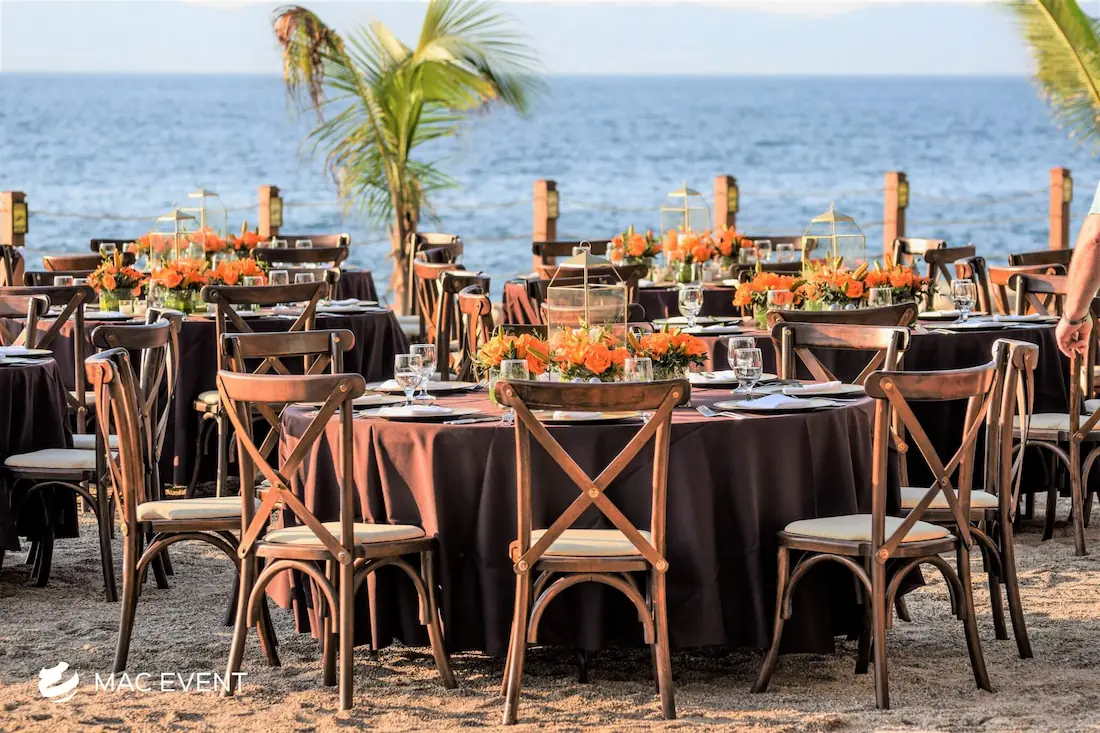 The cross back chair, also known as a x-back chair or farmhouse chair, is a timeless favorite for weddings, private parties, and elegant events in San Pancho. Its rustic yet refined design blends perfectly with beach, garden, or boho-inspired settings, adding charm and character to any venue. Crafted from sturdy wood with a curved back for comfort, this cross back chair rental offers both beauty and practicality. Renting x-back chairs ensures a coordinated look that enhances your décor while keeping guests comfortable throughout the celebration. For a natural and sophisticated atmosphere, cross back chairs are the perfect choice for any event in San Pancho.