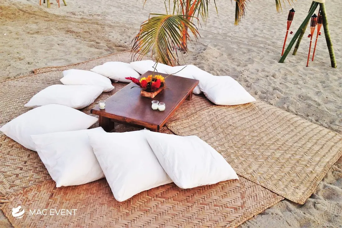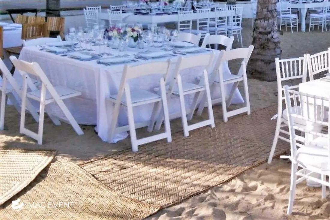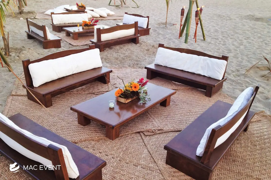 The petate mat adds a touch of authentic Mexican tradition to weddings, beach parties, and corporate events in San Pancho. Woven from natural palm fibers, this event décor rental brings texture, warmth, and cultural charm to your setup. Perfect for picnic lounges, rustic themes, or boho-inspired spaces, the petate mat serves as a stylish base for floor seating, decorative accents, or display areas. Renting petate mats in San Pancho allows you to create organic and inviting environments that reflect local craftsmanship. For a natural and culturally rich detail, the petate mat is a beautiful addition to any event.