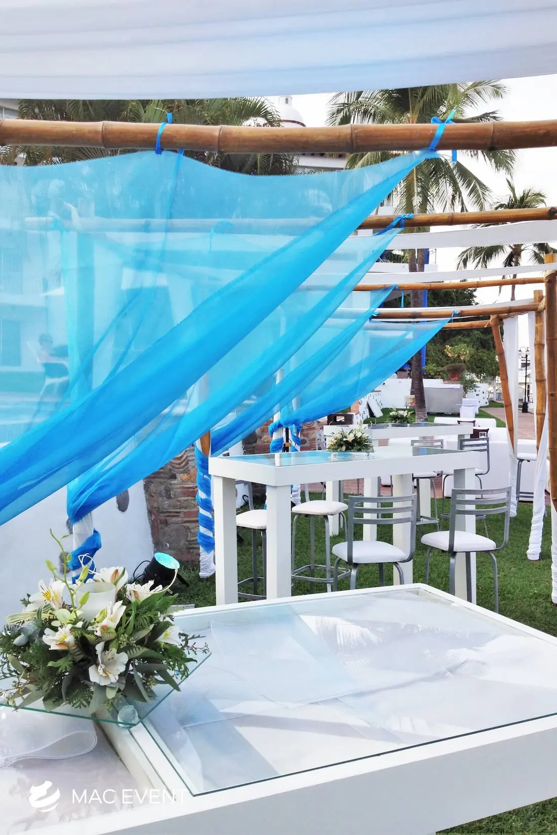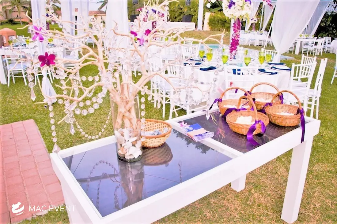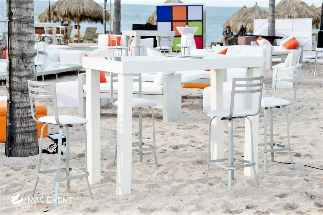 The wooden glass cocktail table combines natural beauty with modern elegance, making it a stylish choice for weddings, parties, and corporate events in San Pancho. Its wooden base adds warmth and character, while the glass top gives a sleek, refined finish that complements any décor. This event table rental works perfectly for cocktail hours, lounge areas, or receptions where you want to create a polished yet inviting atmosphere. Renting wooden glass cocktail tables in San Pancho ensures a cohesive setup that blends sophistication with comfort. For an event that stands out with style and balance, this table is an ideal addition.