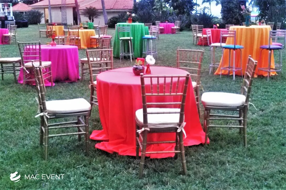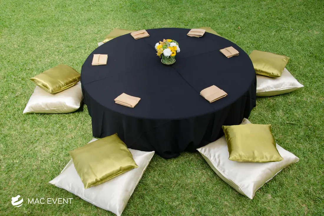 The round coffee table brings elegance and comfort to weddings, parties, and corporate events in San Pancho. Its smooth circular design encourages conversation and creates a welcoming atmosphere in lounge or cocktail areas. This event table rental pairs beautifully with sofas, ottomans, and floor pillows, adding balance and flow to your décor. Renting round coffee tables in San Pancho allows you to design cozy, stylish spaces where guests can relax and enjoy the celebration. For a refined yet relaxed touch, the round coffee table is the perfect addition to any event setup.