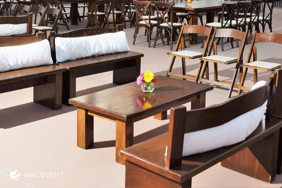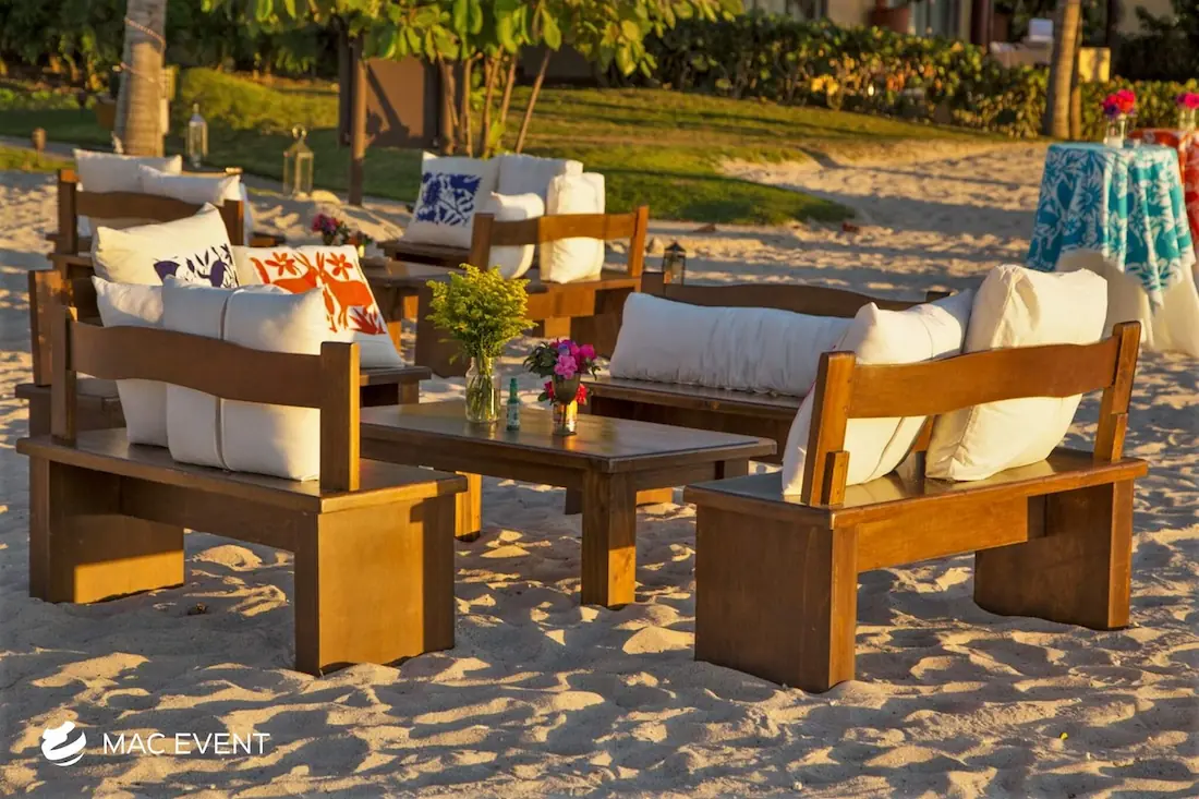 The rustic coffee table adds warmth and character to weddings, private parties, and corporate events in San Pancho. With its natural wood texture and handcrafted design, this event table rental creates a cozy and inviting atmosphere that blends beautifully with beach, boho, or countryside themes. Ideal for lounge areas, cocktail setups, or outdoor receptions, rustic coffee tables provide both charm and functionality. Renting rustic coffee tables in San Pancho allows you to design relaxed yet elegant spaces where guests can gather comfortably. For a natural and timeless touch, the rustic coffee table is a perfect choice for any event.