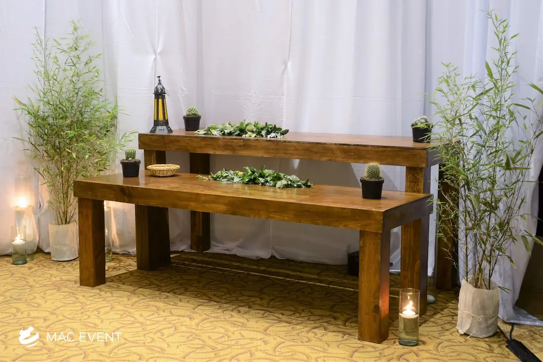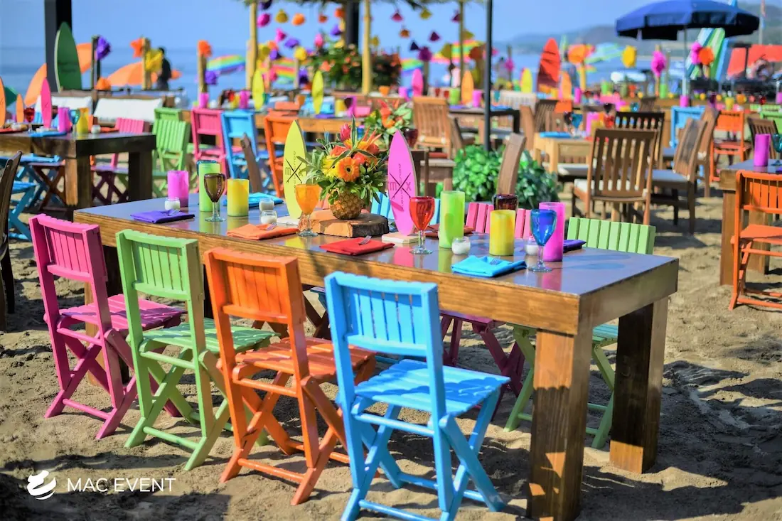 The rustic long table adds warmth and natural charm to weddings, parties, and corporate events in San Pancho. Crafted from solid wood with a handcrafted finish, this event table rental creates an inviting atmosphere that fits perfectly with boho, tropical, or countryside themes. Ideal for family-style dining, outdoor receptions, or elegant beach setups, the rustic long table combines durability with timeless beauty. Renting rustic long tables in San Pancho allows you to design cohesive, welcoming spaces that encourage connection and conversation. For a naturally elegant and authentic setting, this table is a perfect choice for any event.
