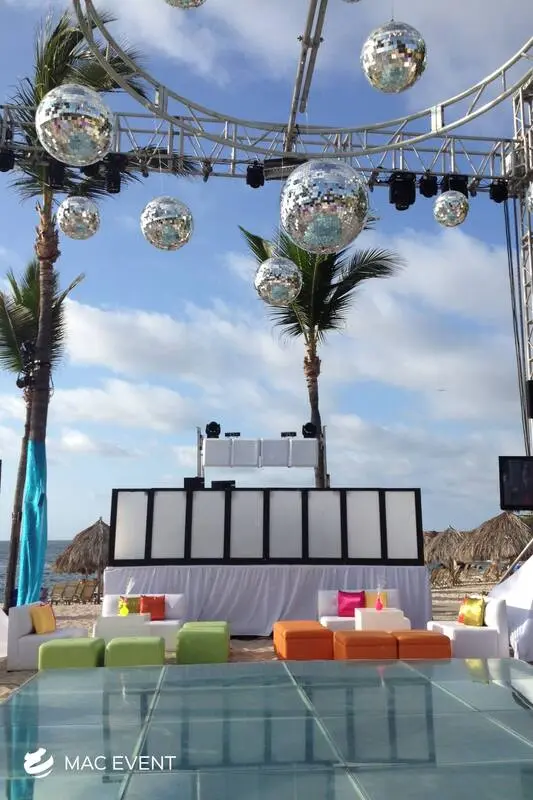 The disco ball adds sparkle, movement, and retro charm to weddings, parties, and corporate events in San Pancho. Perfect for dance floors and evening celebrations, this event lighting rental reflects light beautifully across the venue, creating a fun and energetic atmosphere. Whether paired with colorful spotlights or modern LED effects, the disco ball brings a lively and festive touch to any setup. Renting disco balls in San Pancho ensures professional installation and a polished look that keeps guests entertained. For a dazzling and unforgettable party experience, the disco ball is a classic favorite.