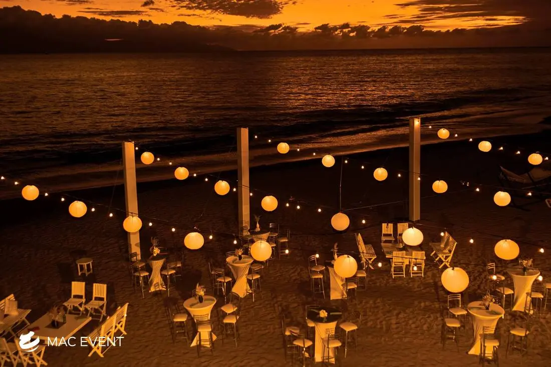 The paper lanterns add charm and a soft, romantic glow to weddings, parties, and corporate events in San Pancho. Perfect for outdoor receptions, beach dinners, or garden celebrations, this event lighting rental creates a warm and inviting atmosphere. Available in various colors, sizes, and shapes, paper lanterns can be hung individually or in clusters to complement your décor. Renting paper lanterns in San Pancho ensures professional installation and a cohesive look that enhances your theme. For an elegant and whimsical touch that transforms any space, the paper lanterns are a beautiful choice for any event.